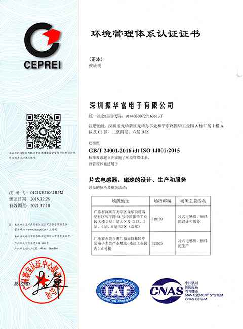 2007年取得GB/T 24001环境管理体系证书;